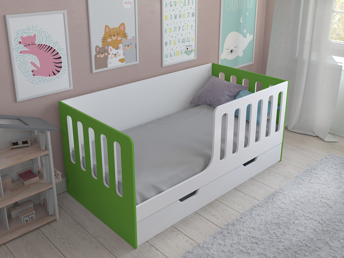 Детская кровать Астра 12 с ящиком (Салатовый)