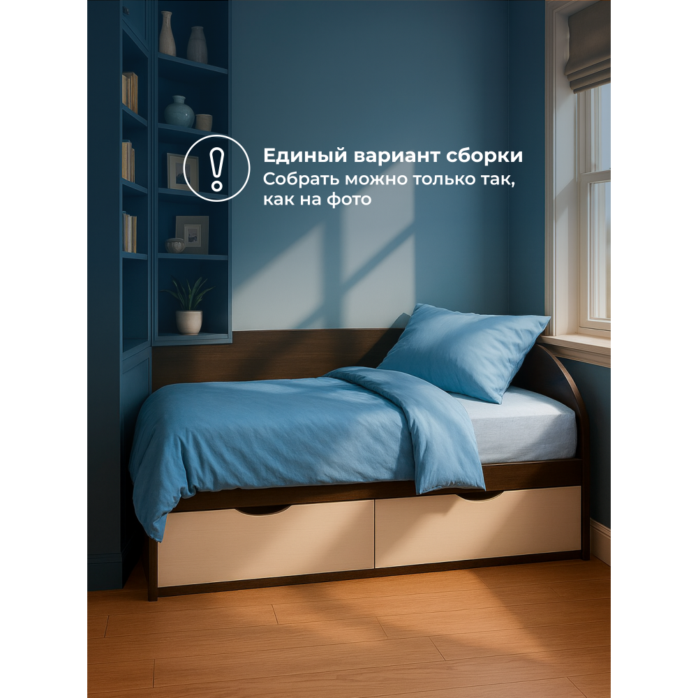Кровать Классика; ЛДСП. Два вместительных бельевых ящика на роликовых направляющих. Нагрузка на спальное место до 100кг. Цвет основания спального места может отличаться