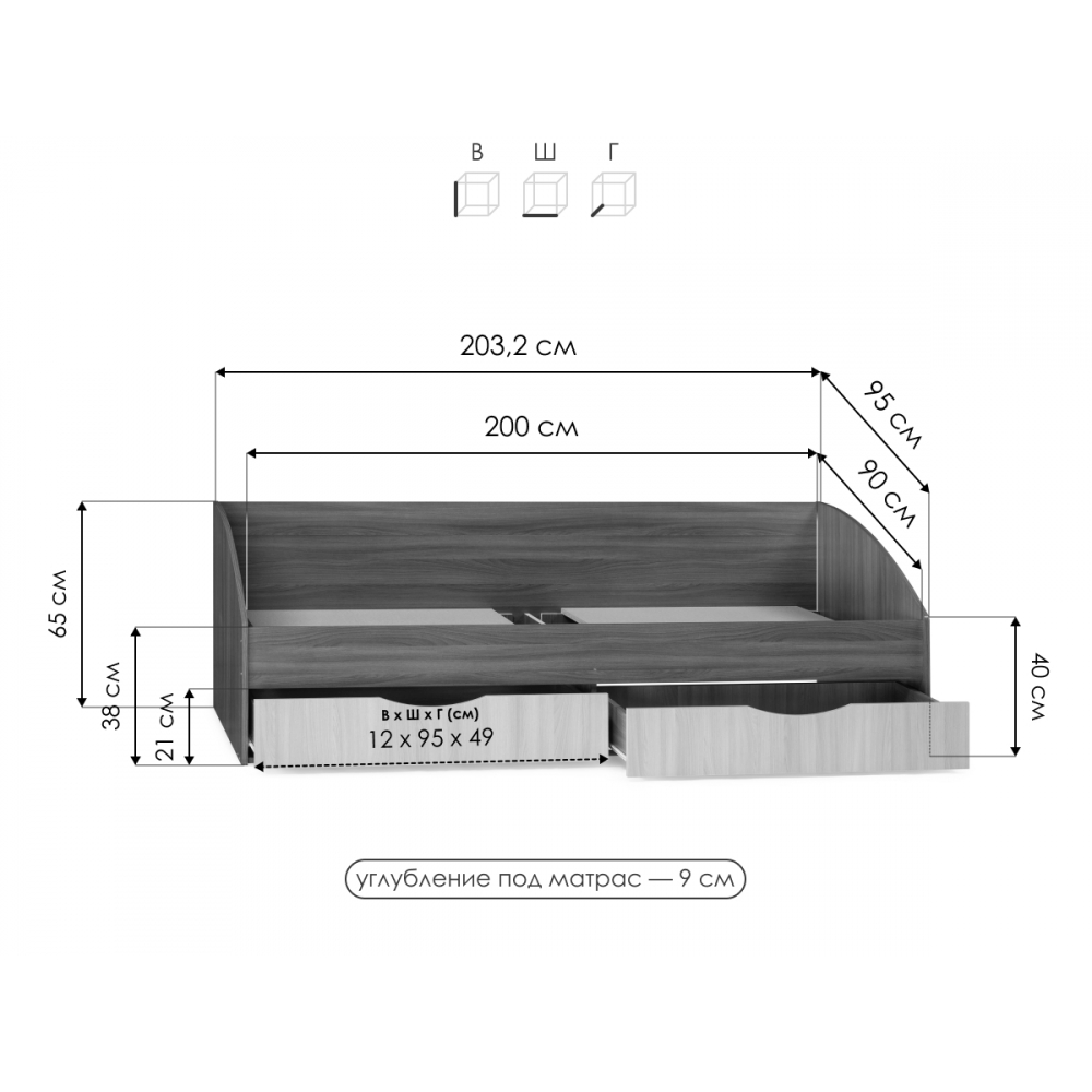 Ш 203 X В 65 X Г 95 см