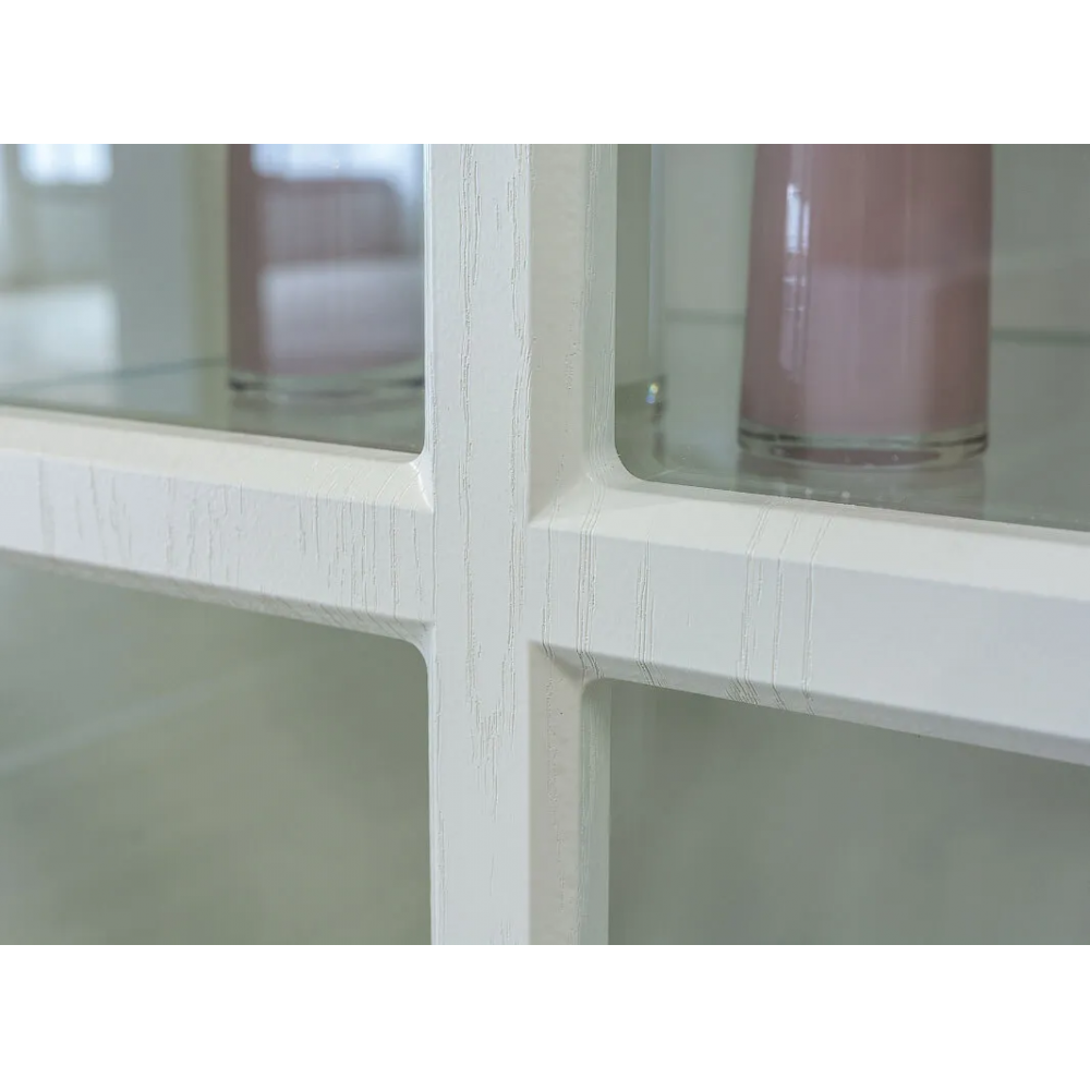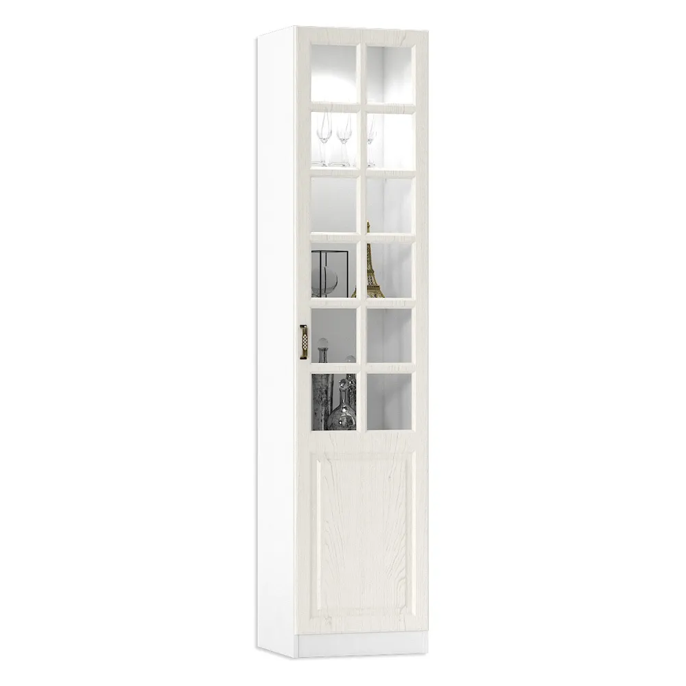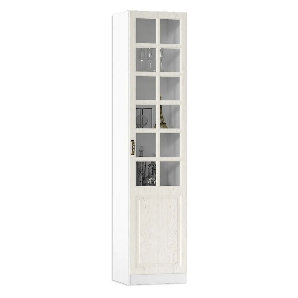 Шкаф Ливерпуль белый / ясень ваниль; ЛДСП. МДФ фасады, прозрачное стекло 4мм. Металлическая ручка. Дверь на 4ёх шарнирных петлях. Универсальная установка двери