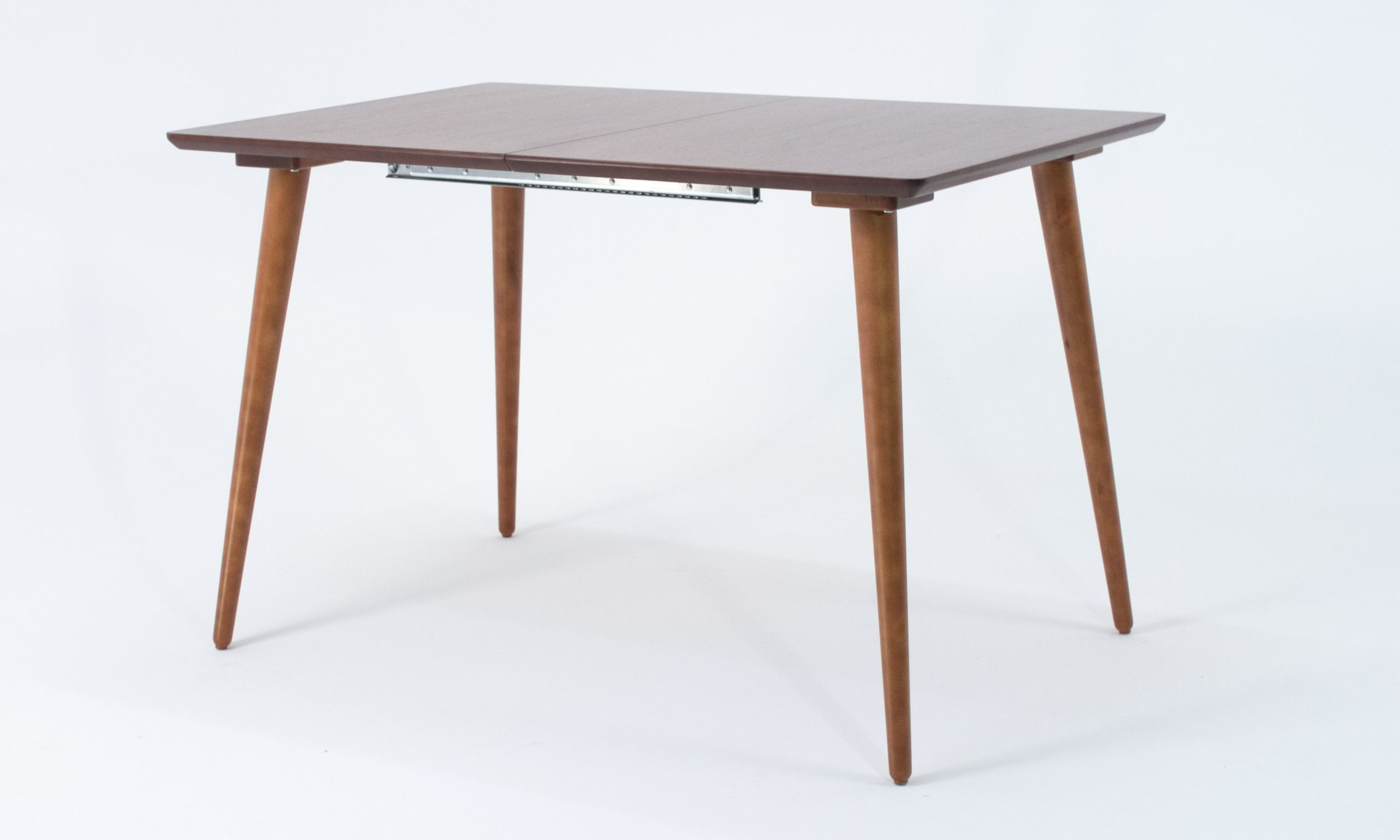 Стол необычный — у него нет несущей рамы и при этом стол раскладной — в разложенном состоянии (160 сантиметров) с комфортом разместит 8 человек (или 10, если посадка будет очень плотной).