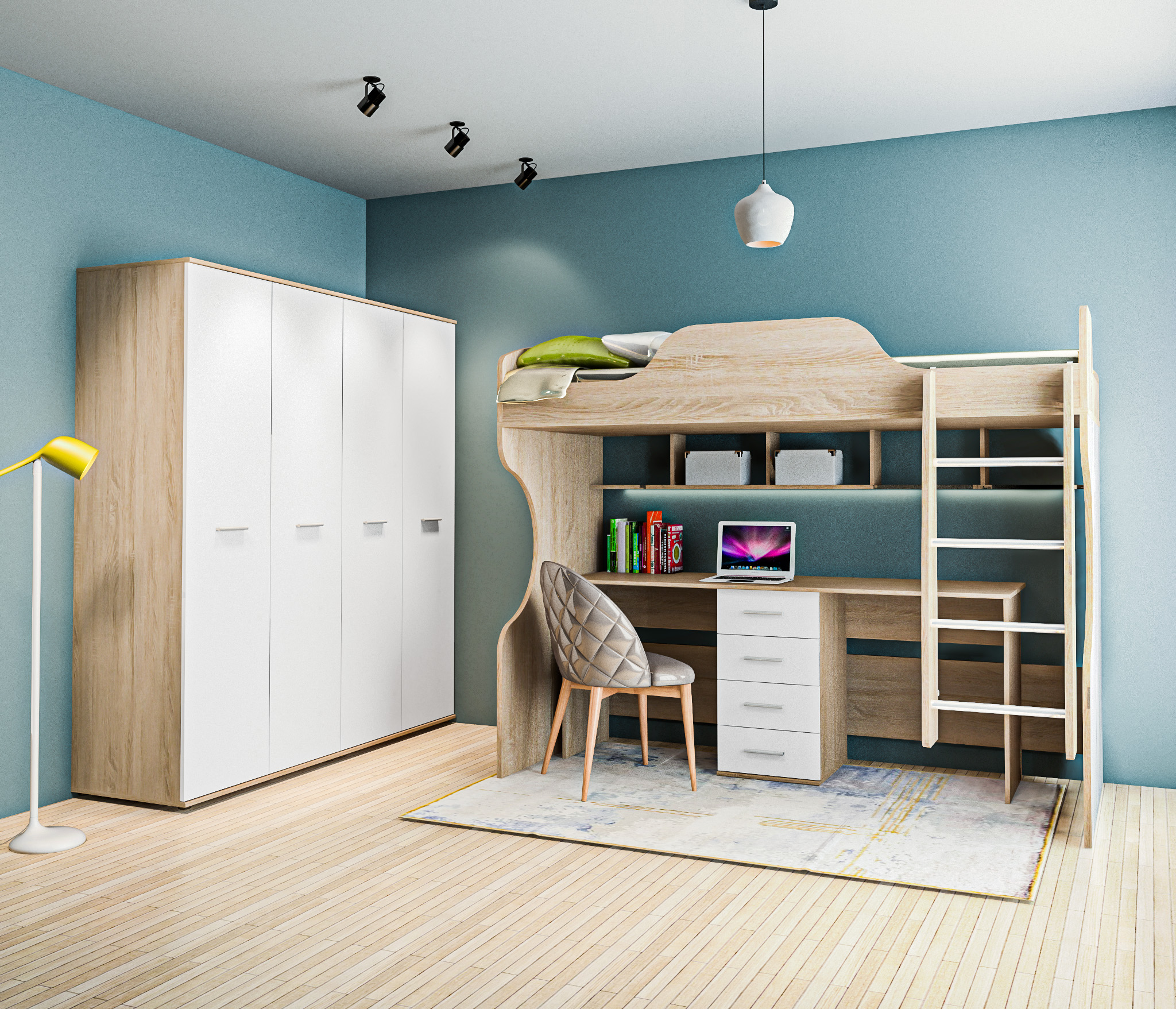 Представляем вам детскую комнату «Мамбо», идеальное решение для активных и креативных детей. Материал ЛДСП, цвет Дуб Сонома, Белый.