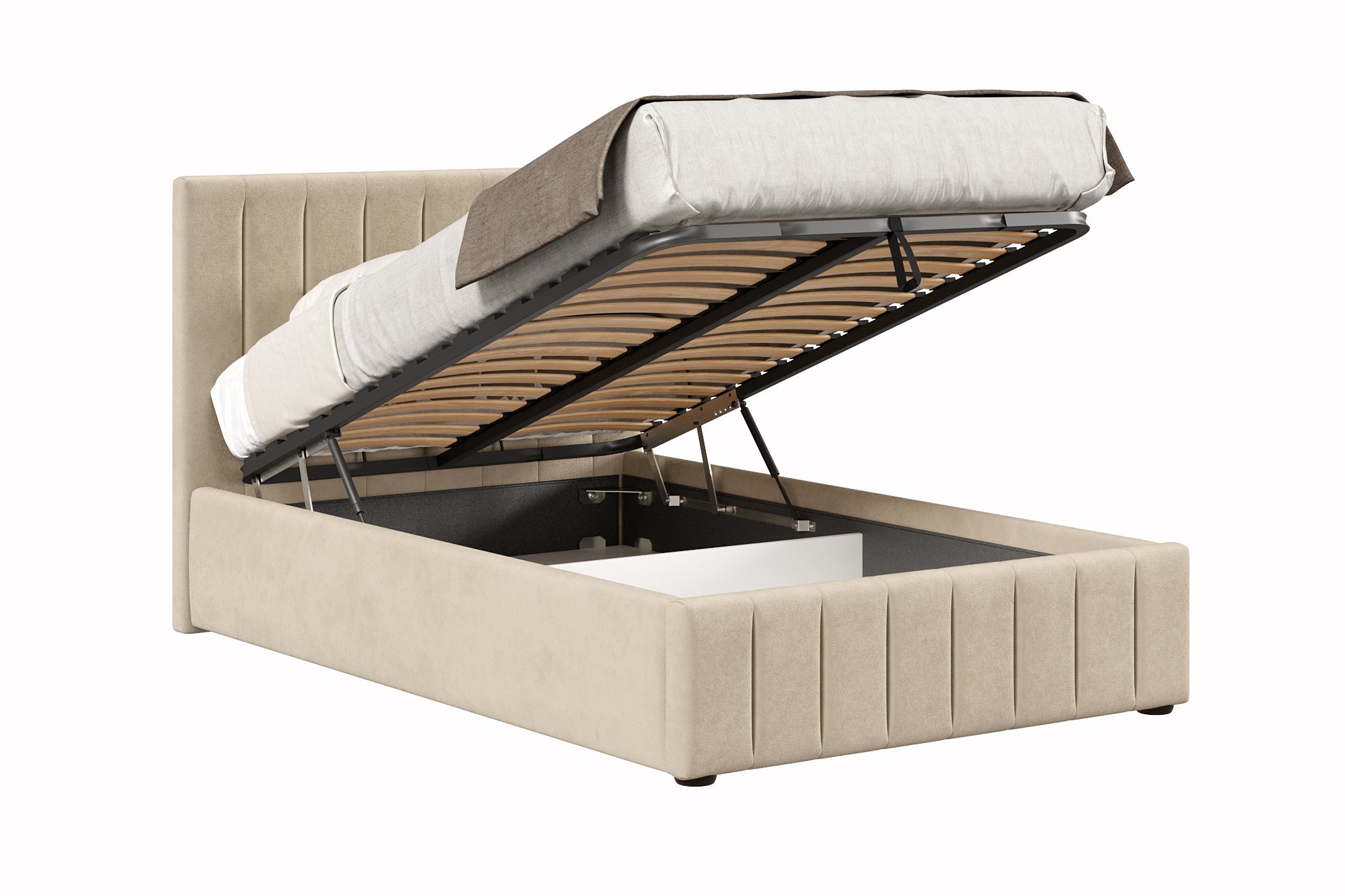 Кровать имеет нишу для хранения разных вещей, это очень удобно, если пространство в комнате не дает возможность поставить дополнительные шкафчики, либо полки.