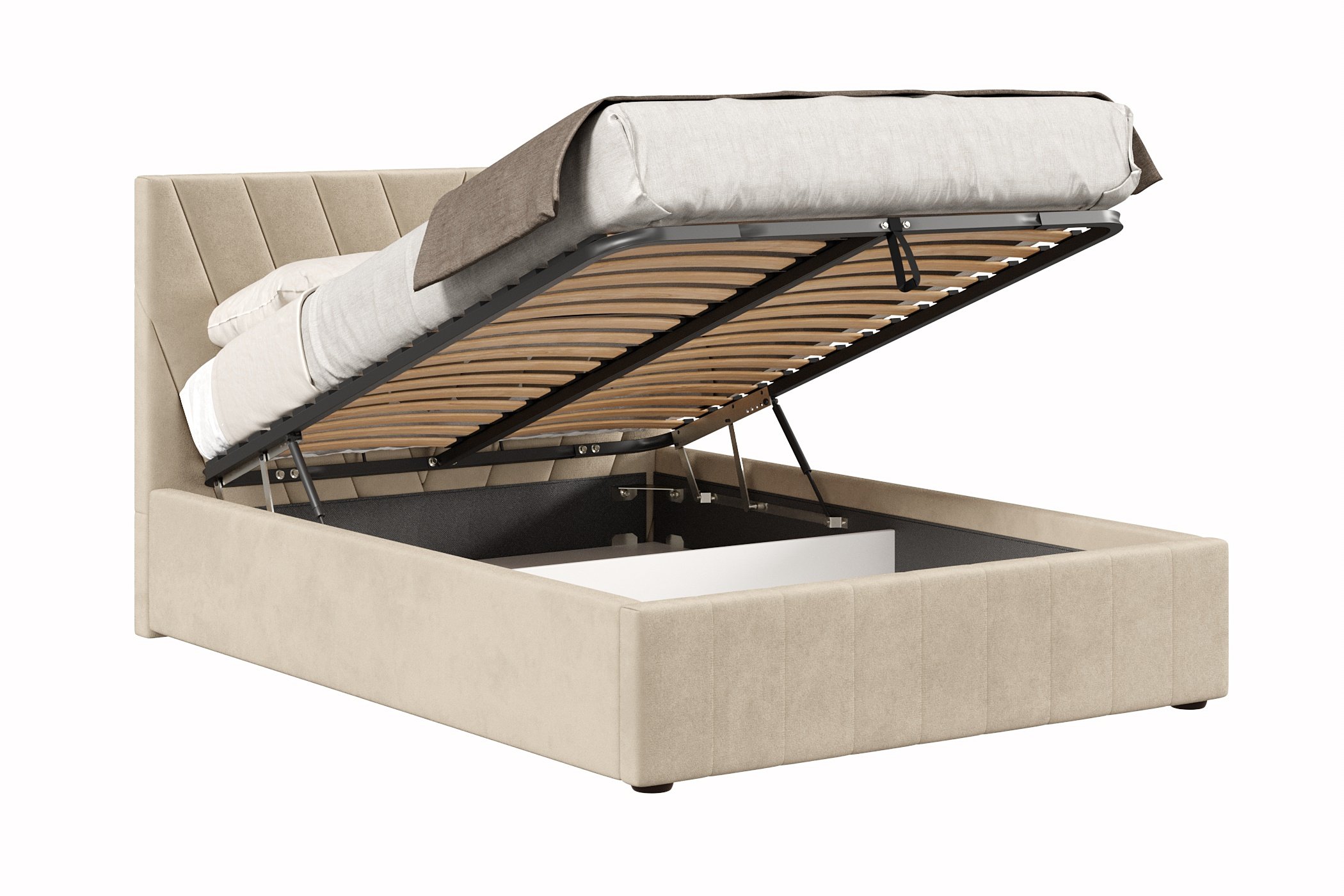 Кровать имеет нишу для хранения разных вещей, это очень удобно, если пространство в комнате не дает возможность поставить дополнительные шкафчики, либо полки.