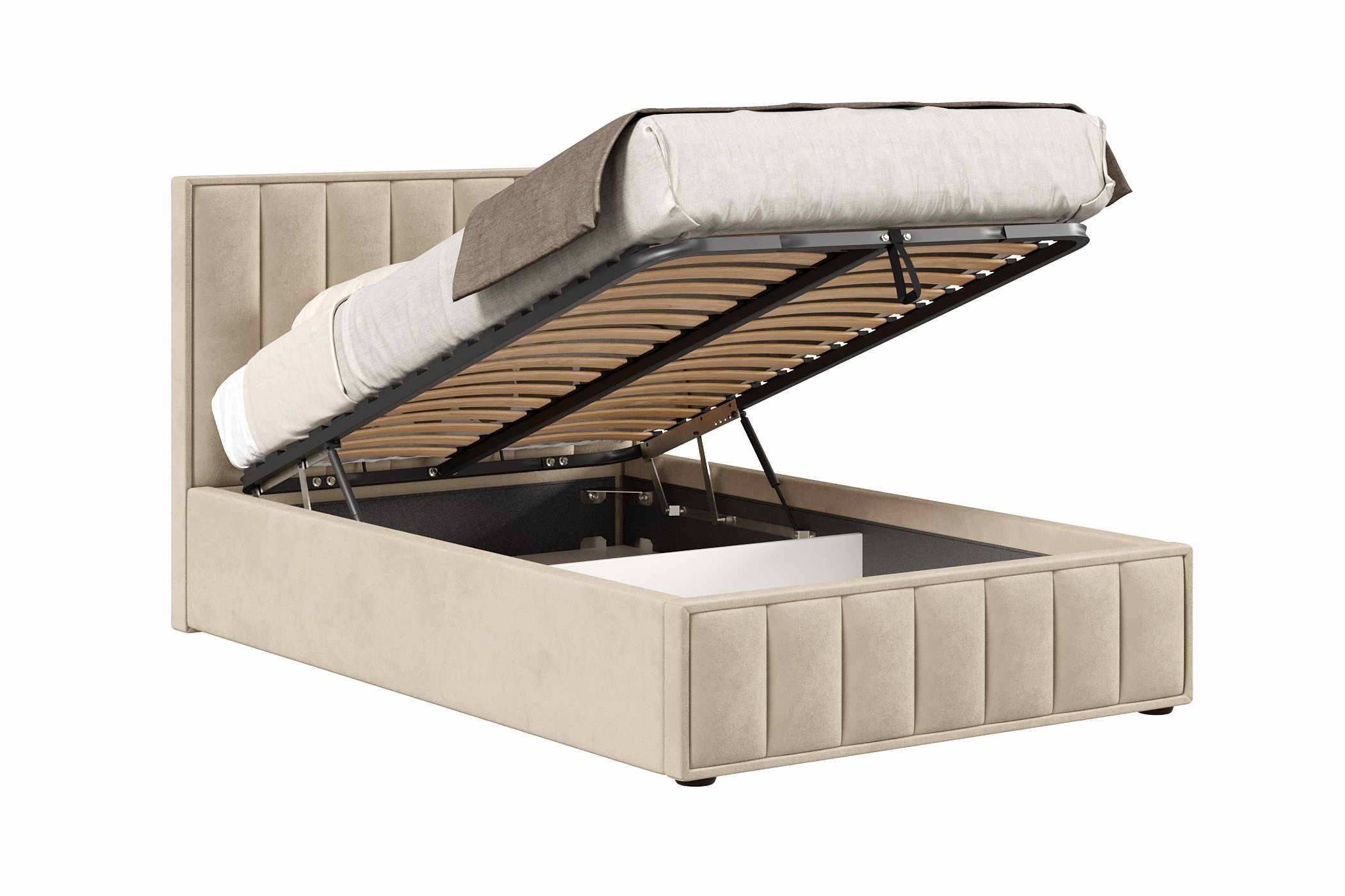 Кровать имеет нишу для хранения разных вещей, это очень удобно, если пространство в комнате не дает возможность поставить дополнительные шкафчики, либо полки.