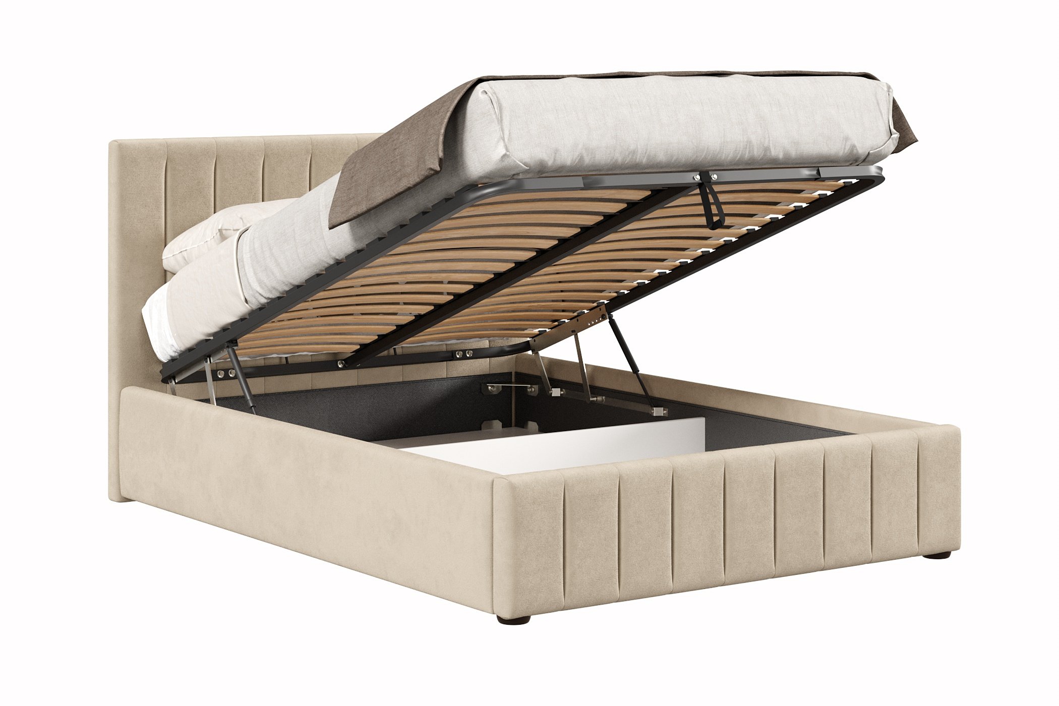 Кровать имеет нишу для хранения разных вещей, это очень удобно, если пространство в комнате не дает возможность поставить дополнительные шкафчики, либо полки.