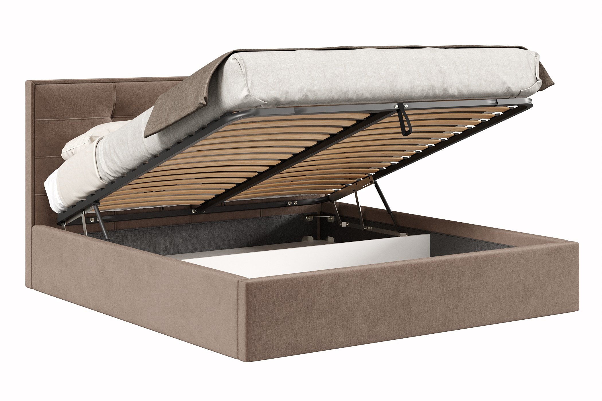 Кровать имеет нишу для хранения разных вещей, это очень удобно, если пространство в комнате не дает возможность поставить дополнительные шкафчики, либо полки.