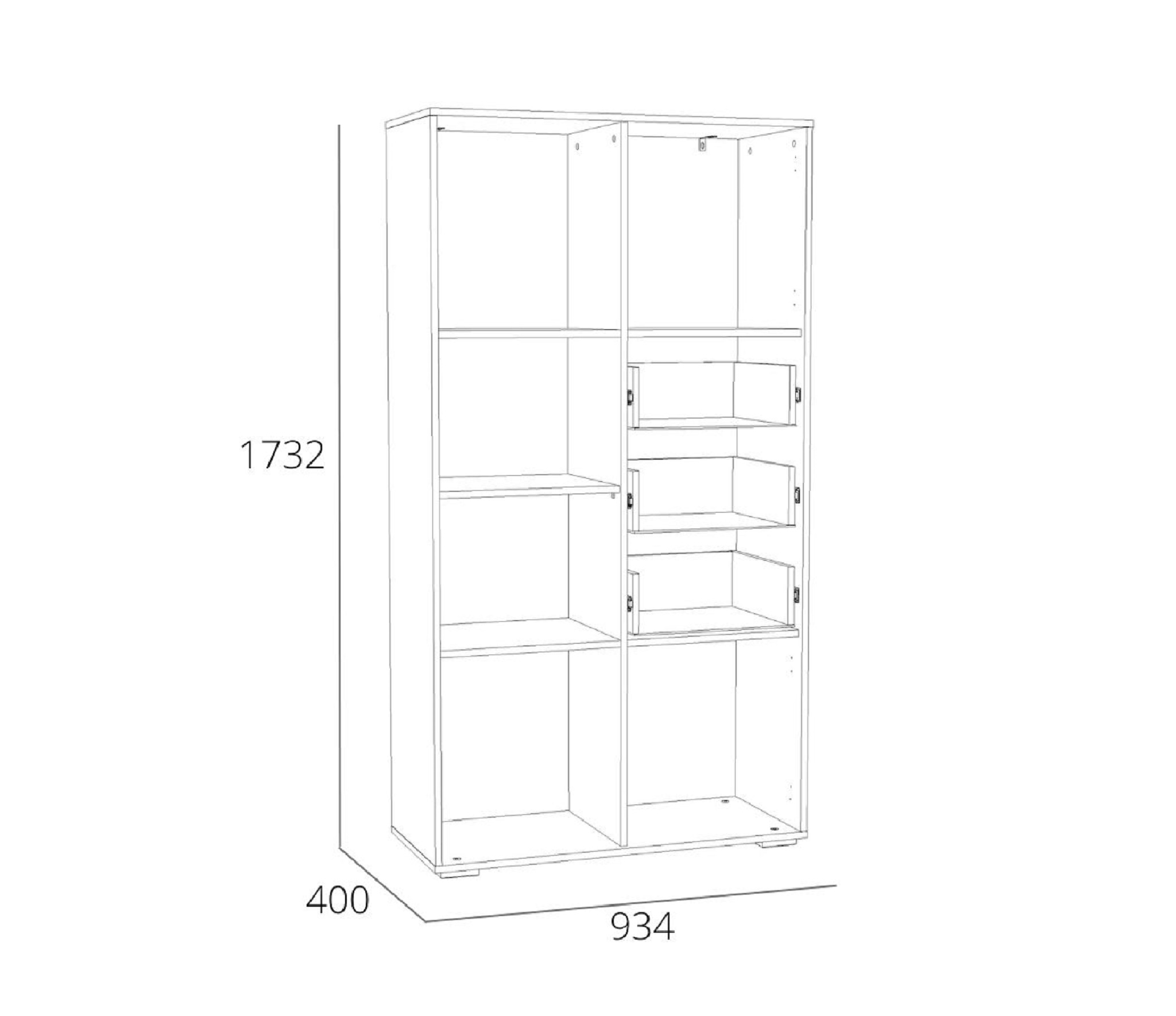 Размер стеллажа: Ш 934мм, Г 400мм, В 1732мм.