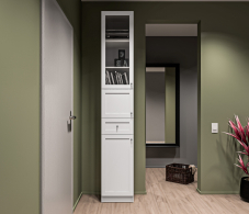 МС Твин предоставляет возможность собрать шкаф или стеллаж по своему вкусу. Вы сами выбираете размеры, цвет ручек: белый или черный, наполнение: ящик или полки. Помимо этого, вы можете решить, оставить фасады глухими или выбрать стеклянные, чтобы добавить прозрачности и легкости в ваш интерьер. Создайте шкаф-стеллаж, который идеально подходит для ваших потребностей и вписывается в ваш стиль.