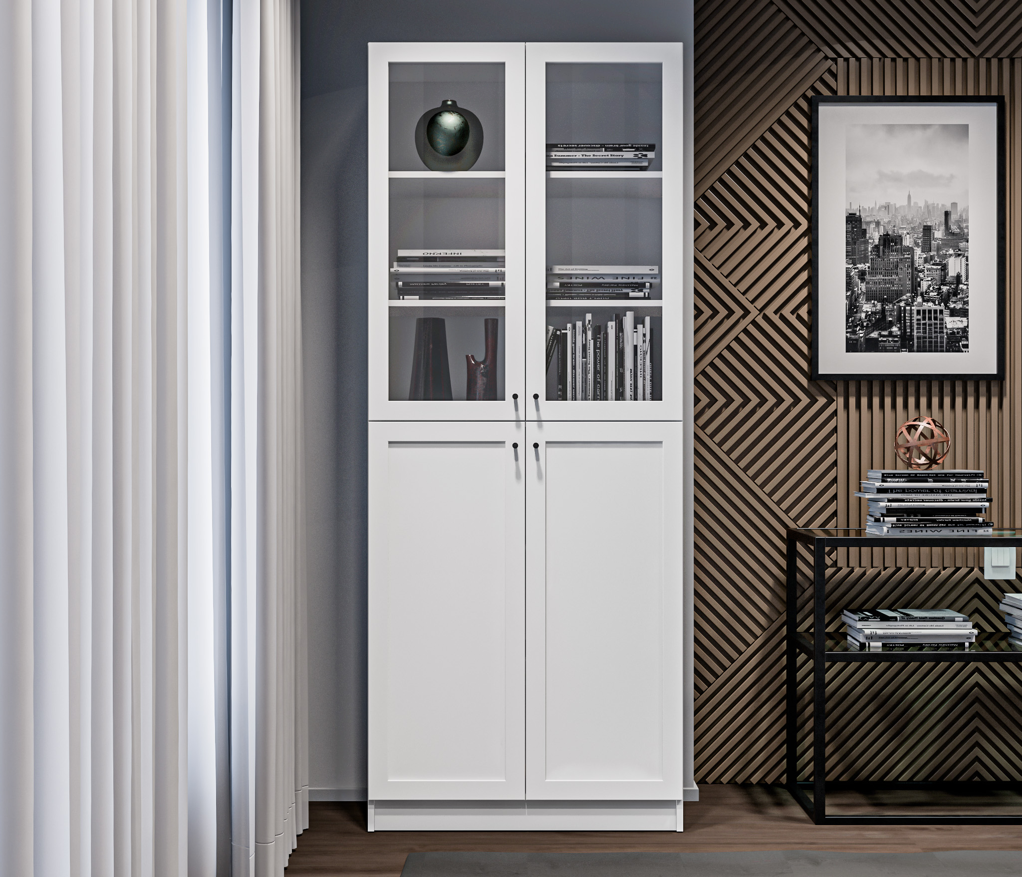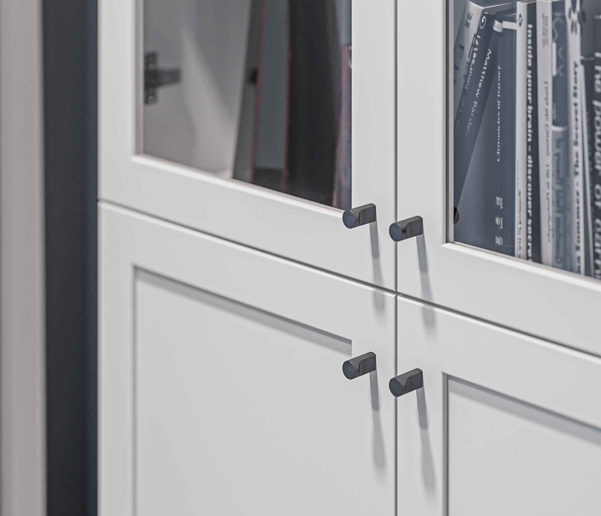 МС Твин предоставляет возможность собрать шкаф или стеллаж по своему вкусу. Вы сами выбираете размеры, цвет ручек: белый или черный, наполнение: ящик или полки. Помимо этого, вы можете решить, оставить фасады глухими или выбрать стеклянные, чтобы добавить прозрачности и легкости в ваш интерьер. Создайте шкаф-стеллаж, который идеально подходит для ваших потребностей и вписывается в ваш стиль.
