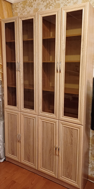 Сам шкаф очень понравился и удобством и внешний видом. Смотрится стильно и красиво дороже своей стоимости. Тонированные стекла также выглядят стильно, при этом видно что внутри. даже фоторамки и статуэтки, но все же что внутри немного менее бросается в глаза. Первое время сидела и любовалась, также как и на шкаф для одежды этой серии шк 3/4. Даже если есть минимальные недостатки, то с учетом стоимости и внешнего вида это мелочи. Карточка не заполнена. Сборка на момент покупки начало февраля 2024 - 2000-2600р (дороже если нет по 30 см с каждой стороны от размера шкафа для сборки лежа) + 1200-1600 опоры для выравнивания. Мы заплатили 3800 за это все и 1000р за доставку и подъем в квартиру на лифте. те всего 17800. Но шкаф этого точно стоит. У нас цвет дуб сонома. Цвет мне очень нравится и что есть теплинка, особенно при теплых лампах и солнце. В общем очень рады покупке. Поэтмоу решили поделиться отзывом и фото. Даже минимальные придирки - мелочи, с учетом красоты по такой бюджетной цене.