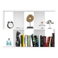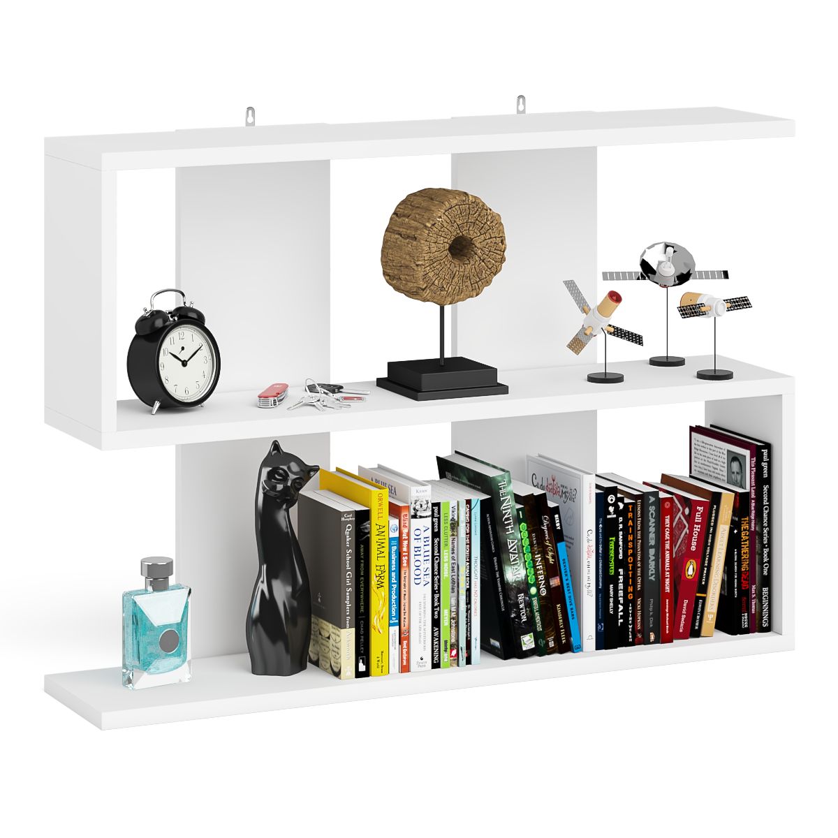 Представляет из себя 3 полки с боковыми стенками по диагонали соединеных двумя задними панелями. Навесы и шурупы входят в комплект поставки, фурнитура (саморез, дюпель) непосредственно для крепления полки к стене НЕТ. При изготовлении используются экологически чистые материалы и отделка.