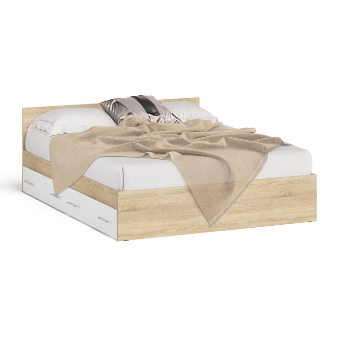 Отзывы о Столплит Кровать двуспальная с выдвижными ящиками Мори 1600 Дуб Сонома, Белый
