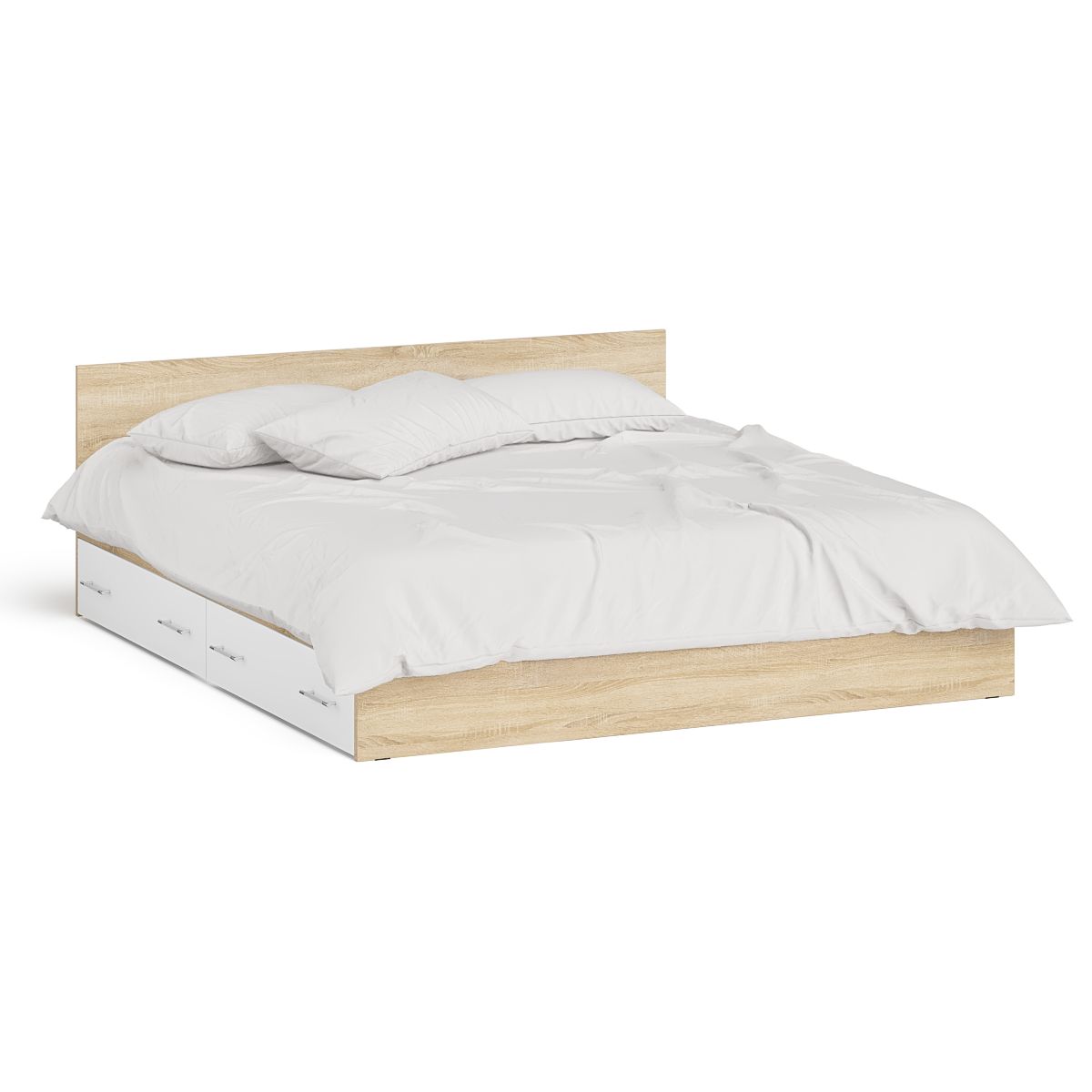 Отзывы о Столплит Кровать двуспальная с выдвижными ящиками Мори 1800 Дуб Сонома, Белый