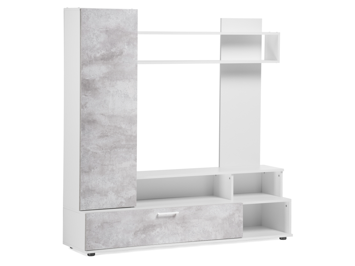 Под нишей расположен 1 закрытый ящик и 3 открытые полки, которые могут стать идеальным местом для хранения вашей коллекции DVD, игр, журналов и других вещей.