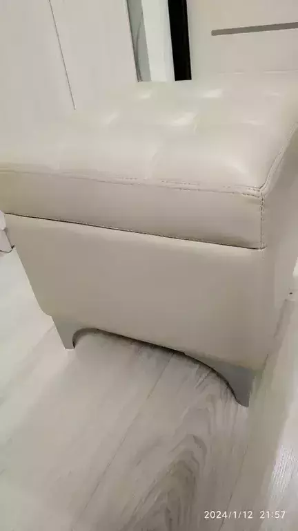 Банкетка установлена на изящные ножки, что создаёт дополнительный комфорт при проведении влажной уборки в комнате.