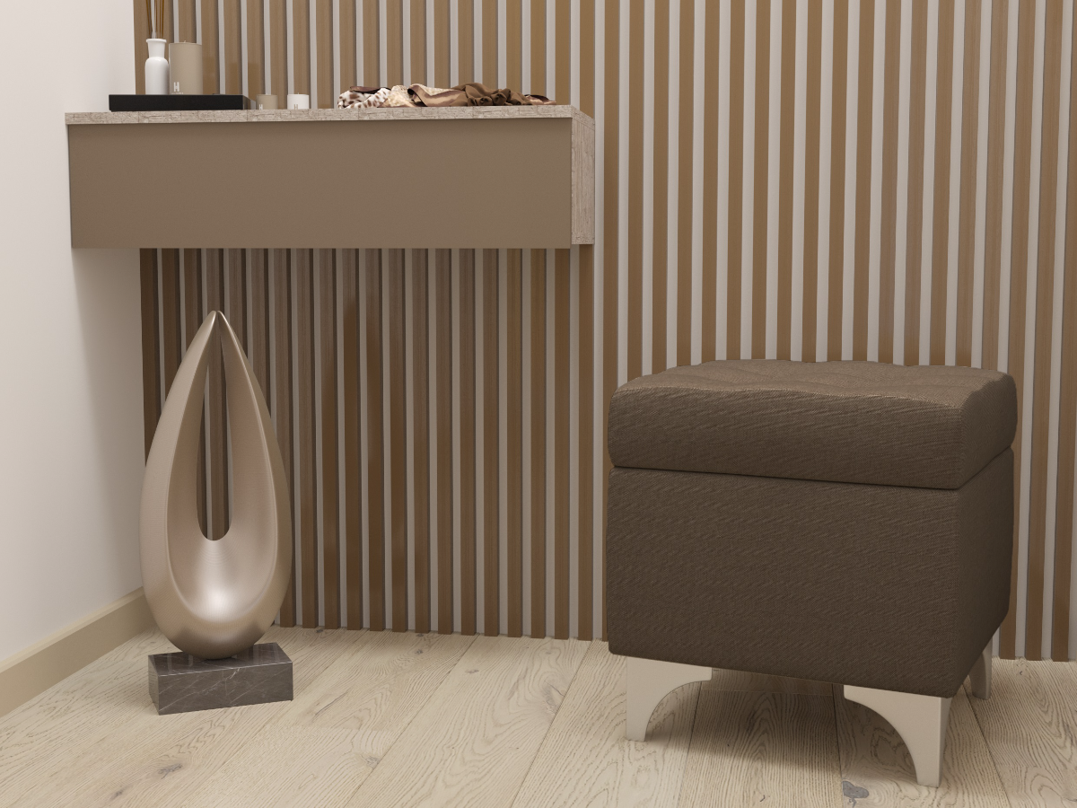 Каркас пуфика изготовлен из ДСП, в качестве наполнителя мягкого сиденья использован высокого качества поролон повышенной плотности. Пуфик установлен на изящные ножки, что создаёт дополнительный комфорт при проведении влажной уборки в комнате. Пуфик с нишей Жозефина-2 - сидеть на ней Вы будите с удовольствием!