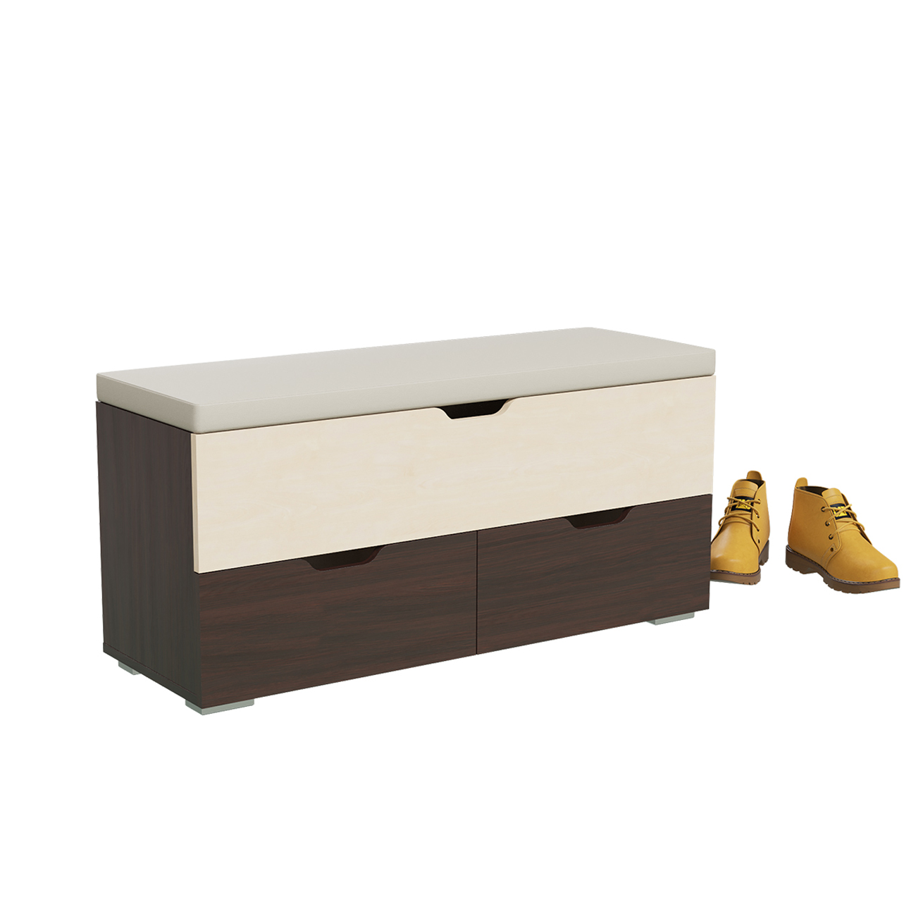Пуф имеет три самостоятельных отделения, две выдвижные нижние полки и одну большую секцию под сиденьем. Эти пуфы представлены в трех вариантах расцветки (на любой вкус и цвет можно подобрать расцветку под интерьер своей квартиры, помещения, где необходимо разместить этот пуф). Мы выбрали цвет дуб ривьера. Основной массив пуфа цвет похож на цвет свежей деревянной доски, сиденье в темно-коричневом цвете. Большой плюс - не маркость, т.к. мы покупали пуф для прихожей под обувницу. Сиденье удобное, мягкое. Размеры пуфа 1 м дины на 37 см глубины, что позволяет комфортно разместить пуф и в маленьких прихожах и в любом удобном уголке дома, т.к. места занимает компактно мало, а разместить внутри можно достаточное количество вещей и они всегда под рукой.