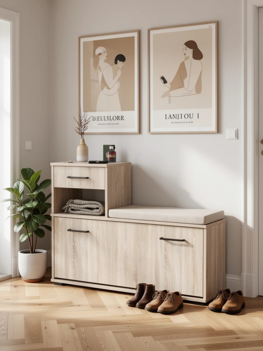 Универсальная сборка тумбы под обувь соответствует Вашим желаниям обновлять интерьер прихожей, меняя надоевший дизайн-проект.