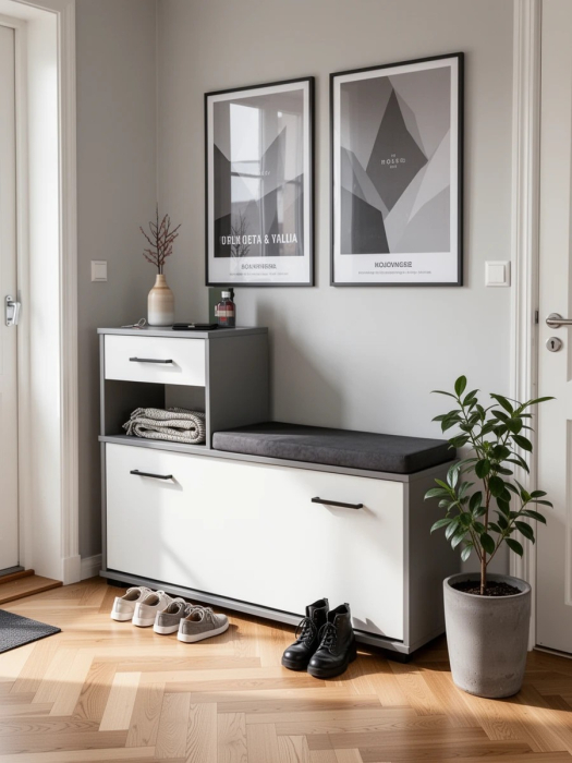 Универсальная сборка тумбы под обувь соответствует Вашим желаниям обновлять интерьер прихожей, меняя надоевший дизайн-проект.