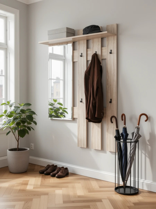 Вешалка с зеркалом Лира 2-3814 - удобная открытая вешалка - идеальный вариант хранения сезонной верхней одежды в ненастную погоду.