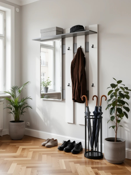 Вешалка с зеркалом Лира 2-3814 - удобная открытая вешалка - идеальный вариант хранения сезонной верхней одежды в ненастную погоду.