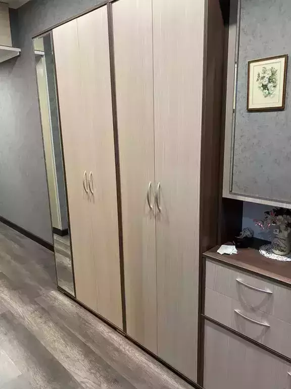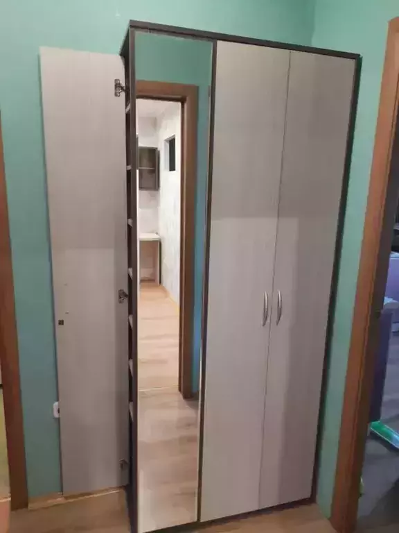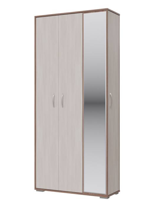 Компактная и вместительная прихожая состоит из шкафа для одежды, шкафа с полками и большого зеркала, украшающего фасад. Шкаф для одежды оборудован НЕ выдвижной штангой для вешалок, антресольной полкой для головных уборов и нижней полкой, выделяющей нишу для обуви. Шкаф с полками, расположенный в торце прихожей, увеличивает ее функциональность, без уменьшения свободного пространства в комнате. Семь полочек торцевого шкафа наглядно разместят коллекцию обуви, шляпок или сумочек, позволяя Вам менять свой имидж ежедневно! Универсальная сборка поможет расположить мебель в прихожей с максимальным комфортом. Уютная цветовая гамма внесёт в атмосферу дома спокойные интонации и умиротворение.