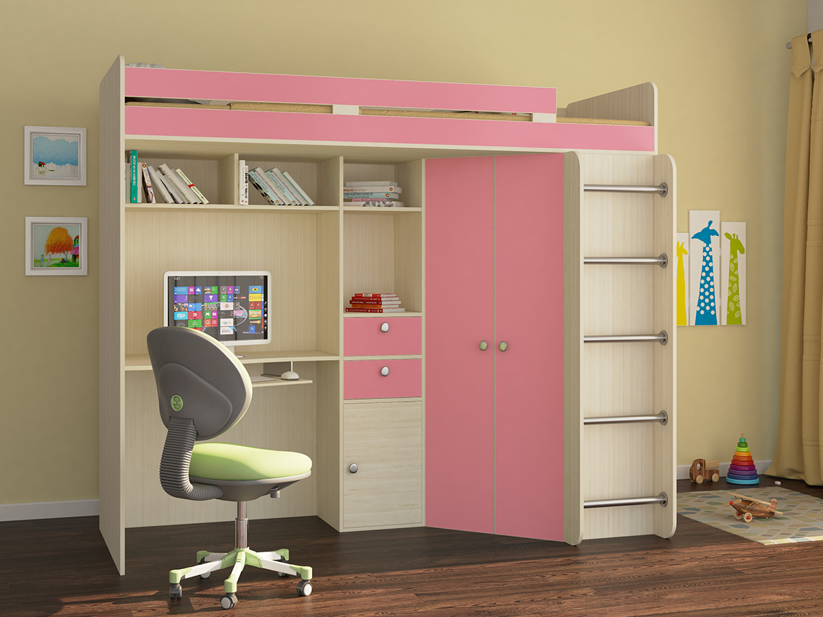 Кровать-чердак Астра (Розовый)