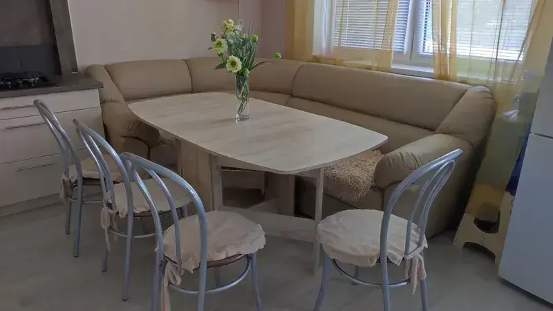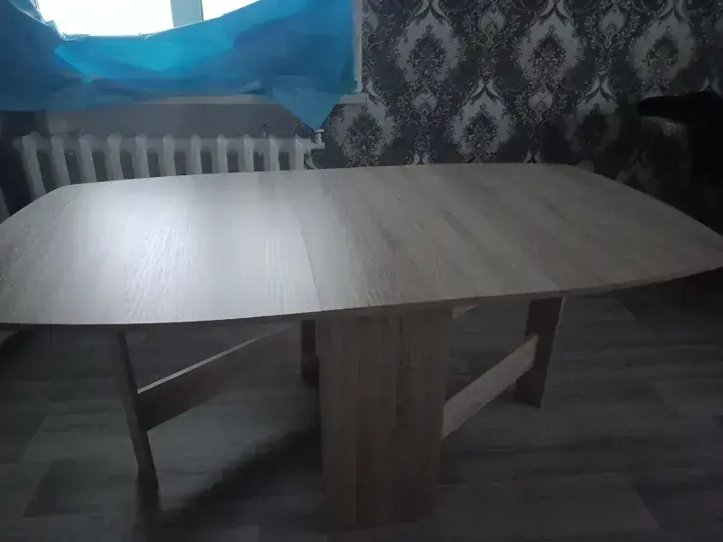 Стол раскладывается, в разложенном виде размер столешницы составляет 1700х900х740 мм. - достаточно вместительный стол для большой кампании. В сложенном виде стол занимает совсем мало места, что позволяет экономить пространство в условиях малогабаритных квартир. В сложенном состоянии ширина стола составляет всего 30 см., Вы можете поставить его «под стеночку и не заметить» или использовать как подставку под цветы и телевизор. Разложив стол наполовину, Вы получаете обеденный стол для семьи, а разложив стол полностью - большой праздничный стол для хорошей кампании.