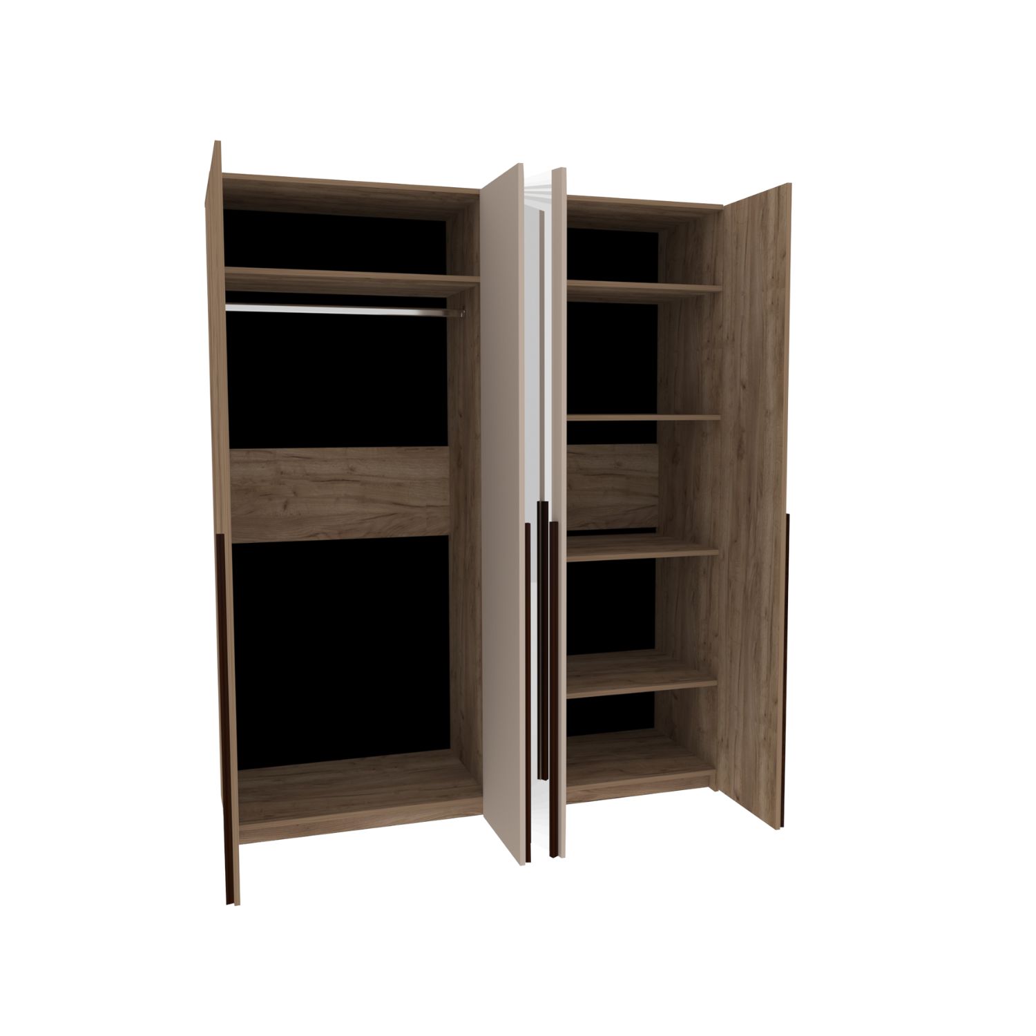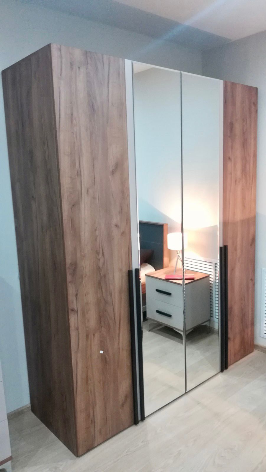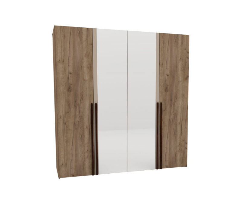 Широкий шкаф для одежды и белья Кара отличается многофункциональным наполнением для организации хранения вещей в прихожей или спальне. Огранённые фацетом зеркала на фасадах шкафа в полный рост выглядят аккуратно, создавая красивые блики.