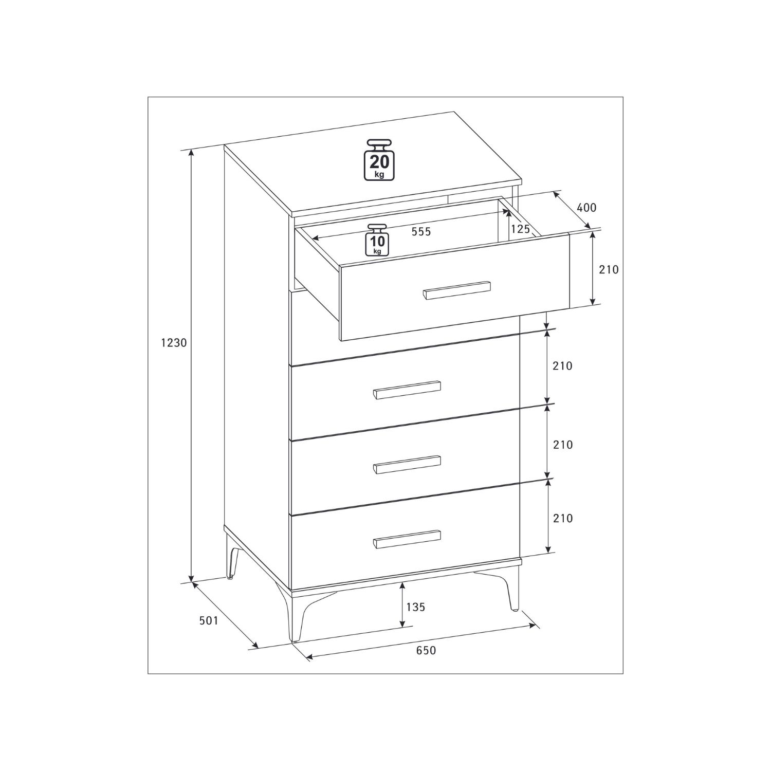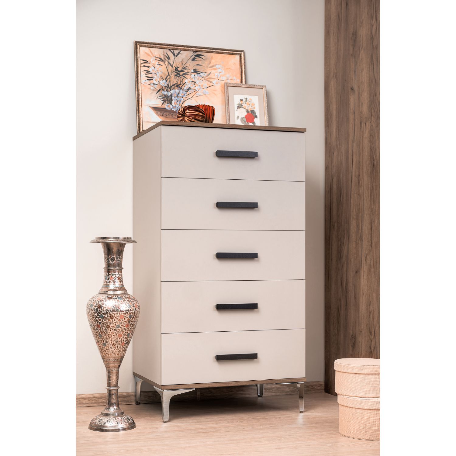 Стильный высокий комод с шестью ящиками из коллекции мебели Кара сочетает в себе простоту, утончённость и функциональность.