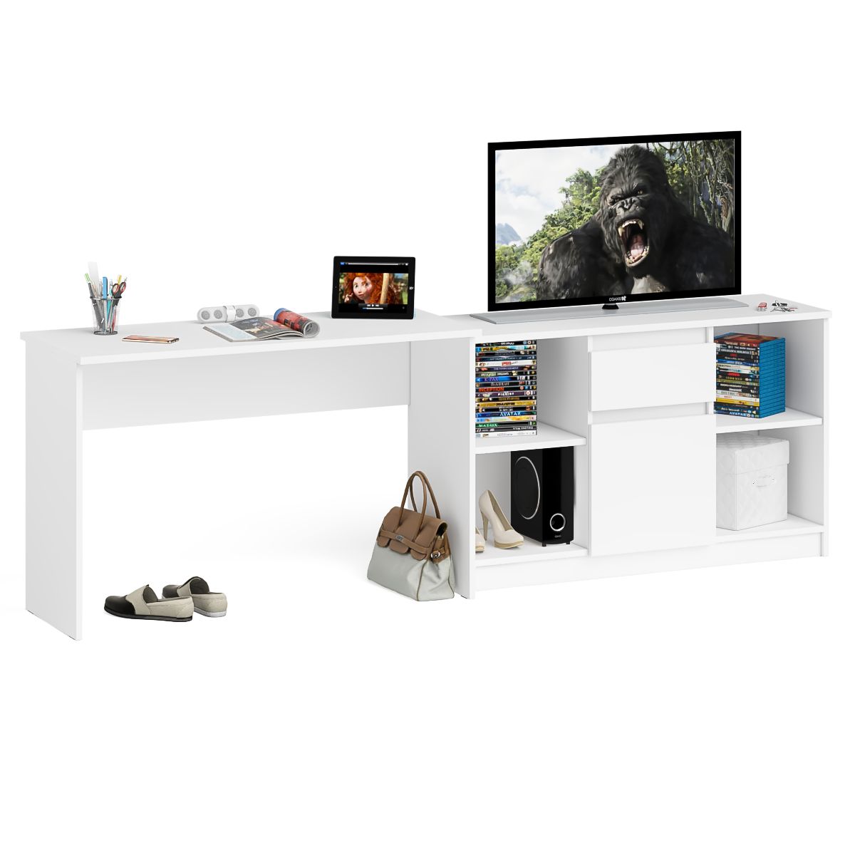 Комплектация включает стол письменный Мори МСП1200.1 и тумбу ТВ Мори МТВ1204.1. Продуманная конструкция позволяет убрать лишние предметы, тем самым сохраняя единый стиль оформления помещения. Отсутствие ручек главное преимущество данной модели. Роль ручек выполняют сами фасады. Стол письменный Мори МСП1200.1 - простой аккуратный стол без тумб и ящиков - минималистичный дизайн и доступная цена. Столещница размером 120х50 см. вместит все необходимые принадлежности для работы. По бокам располагаются две опоры из ЛДСП выполняющие роль ножек. С задней стороны стола имеется царга - верхняя соединительная планка между ножками. Тумба ТВ Мори МТВ1204.1 состоит из двух открытых ниш по бокам и ящика и закрытой нишей по центру. Все ниши имеет полочку по середине. На тумбе достаточно места для размещения телевизора дигональю 47 дюймов. Можно использовать как ТВ тумбу, так и обычную для хранения и размещения Ваших вещей.