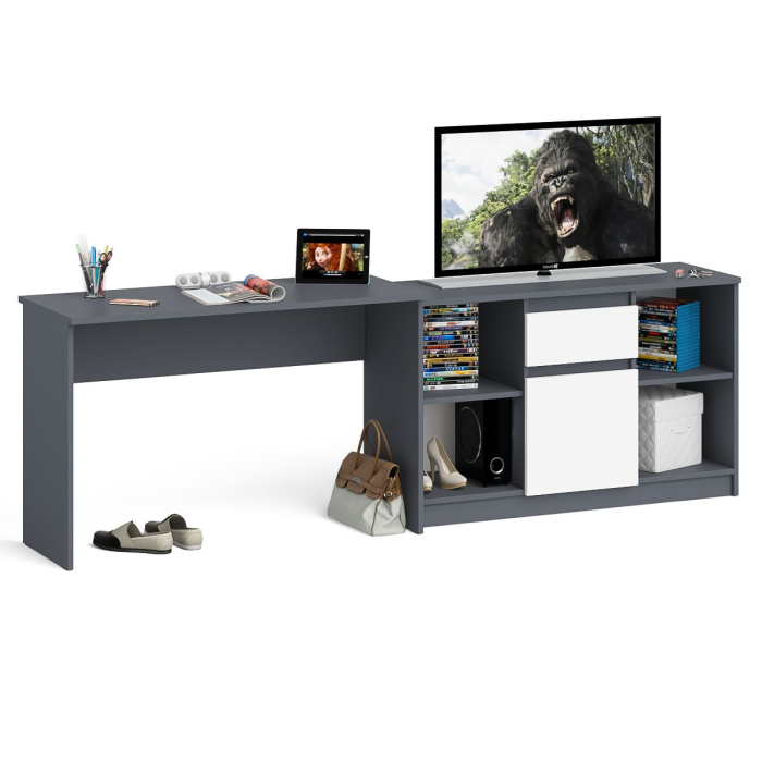 Комплектация включает стол письменный Мори МСП1200.1 и тумбу ТВ Мори МТВ1204.1. Продуманная конструкция позволяет убрать лишние предметы, тем самым сохраняя единый стиль оформления помещения. Отсутствие ручек главное преимущество данной модели. Роль ручек выполняют сами фасады. Стол письменный Мори МСП1200.1 - простой аккуратный стол без тумб и ящиков - минималистичный дизайн и доступная цена. Столещница размером 120х50 см. вместит все необходимые принадлежности для работы. По бокам располагаются две опоры из ЛДСП выполняющие роль ножек. С задней стороны стола имеется царга - верхняя соединительная планка между ножками. Тумба ТВ Мори МТВ1204.1 состоит из двух открытых ниш по бокам и ящика и закрытой нишей по центру. Все ниши имеет полочку по середине. На тумбе достаточно места для размещения телевизора дигональю 47 дюймов. Можно использовать как ТВ тумбу, так и обычную для хранения и размещения Ваших вещей.