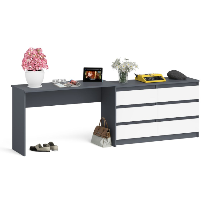 Стол письменный МСП-1200 с широким комодом 1200-6 Мори (Графит/Белый) Код I0000381464