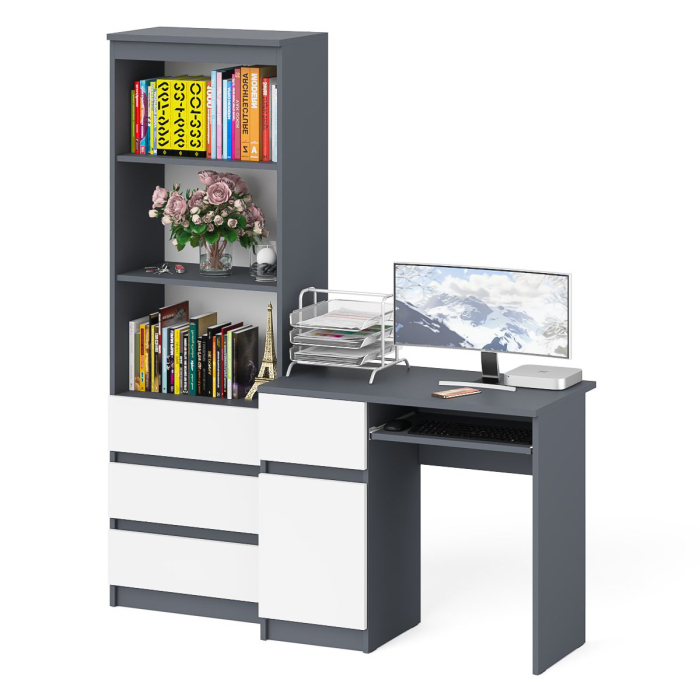 Отзывы о Столплит Стол компьютерный с ящиком и дверкой МС-1 левый со стеллажом МСТ600 Мори Графит/Белый