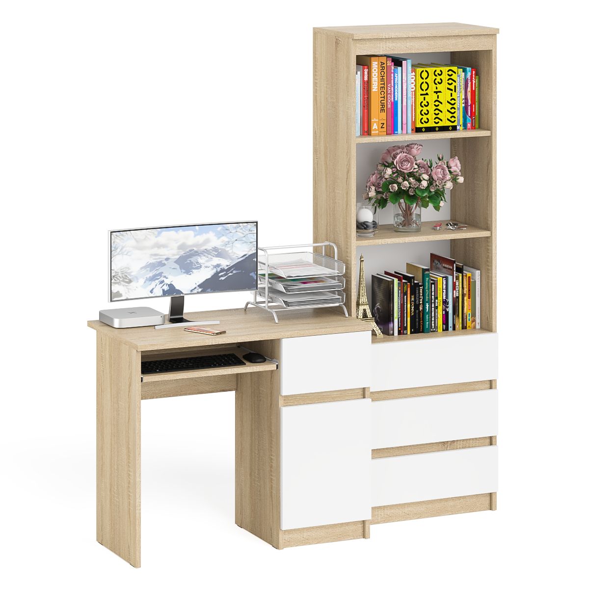 Отзывы о Столплит Компьютерный стол с ящиком и дверкой МС-1 правый со стеллажом с ящиками МСТ600 Мори Дуб Сонома, Белый