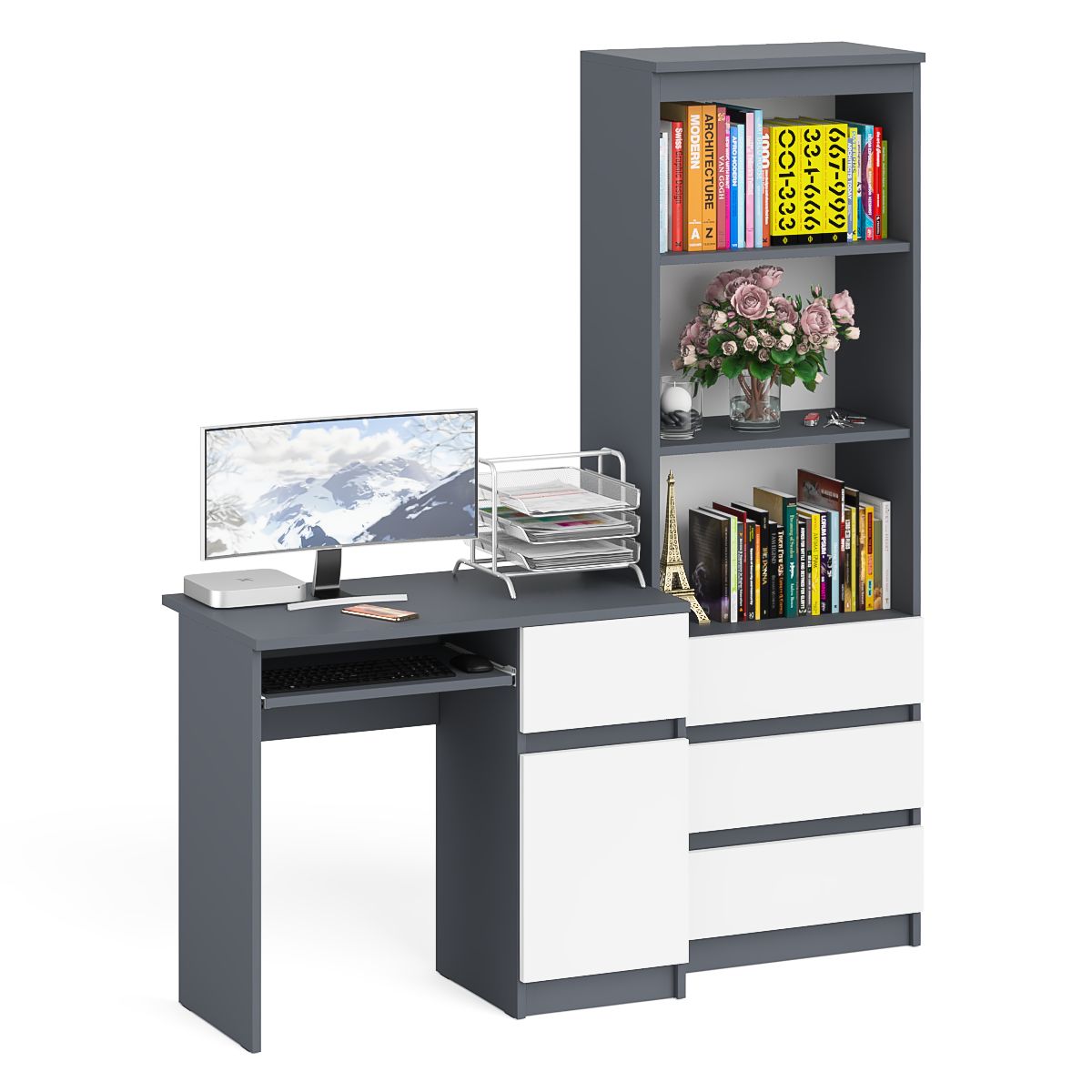 Отзывы о Столплит Компьютерный стол с ящиком и дверкой МС-1 правый со стеллажом с ящиками МСТ600 Мори Графит/Белый