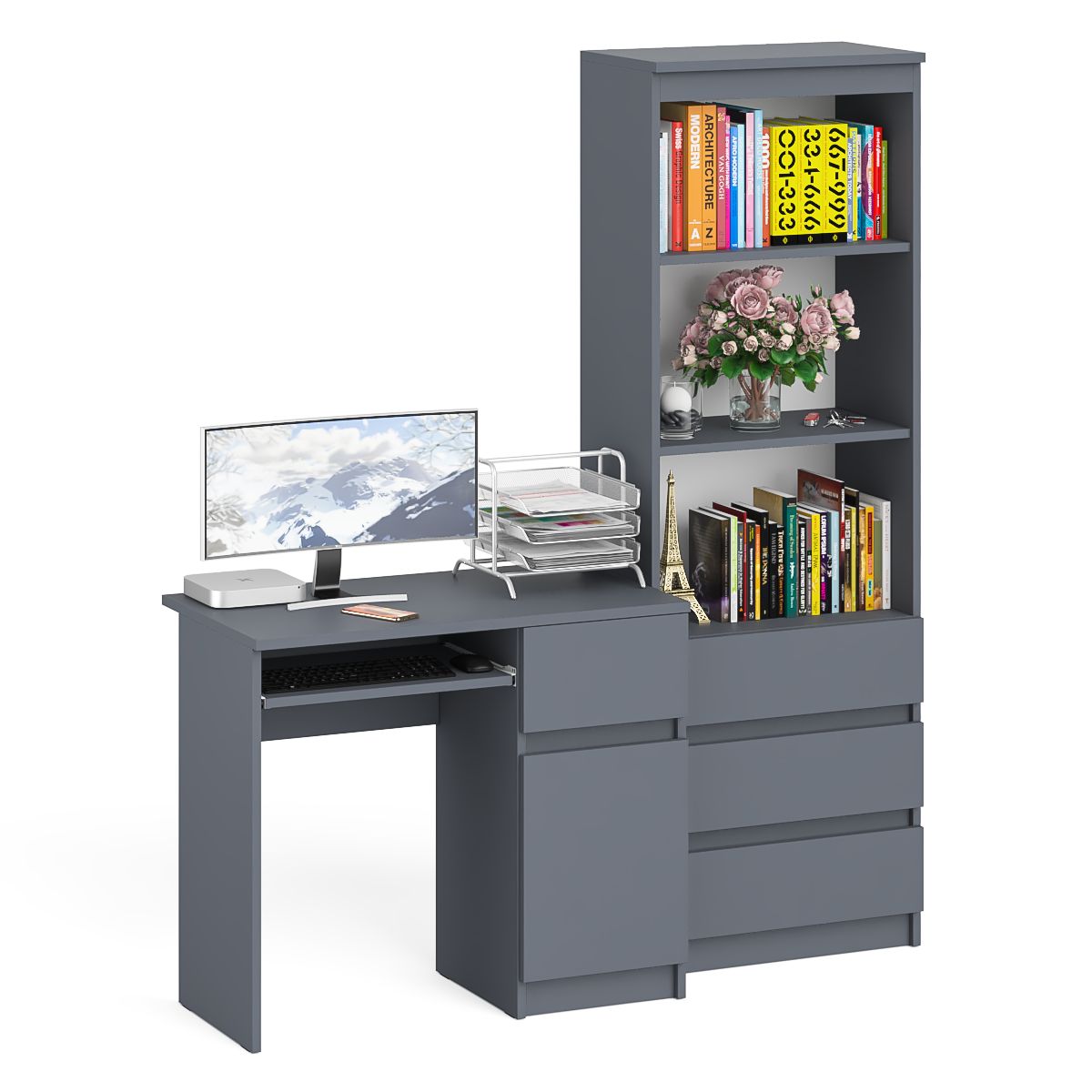Компьютерный стол с ящиком и дверкой МС-1 правый со стеллажом с ящиками МСТ600 Мори - минималистичный дизайн и доступная цена позволяет наслаждаться качественной и современной мебелью без значительных финансовых затрат!