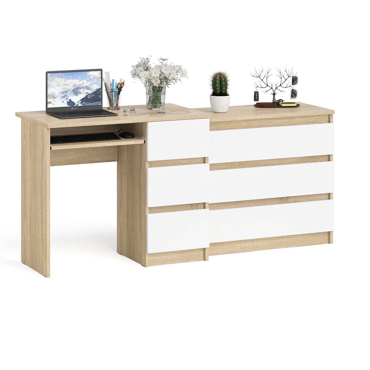 Отзывы о Столплит Компьютерный стол с тремя ящиками МС-6 правый с комодом на три ящика Мори Дуб Сонома, Белый