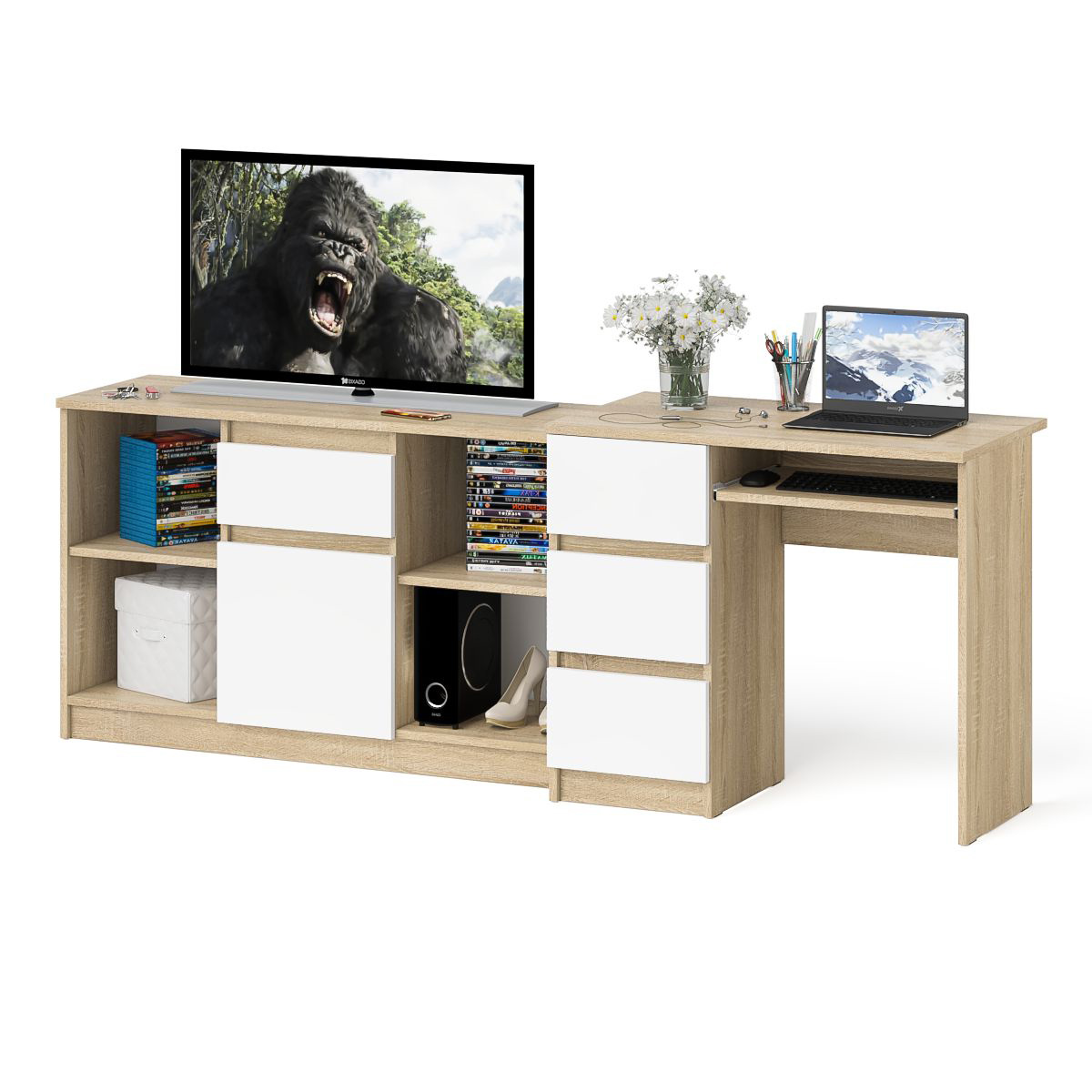 Отзывы о Столплит Стол компьютерный три ящика МС-6 левый с тумбой 1204-1 Мори Дуб Сонома, Белый