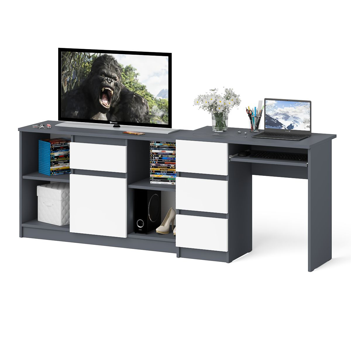 Отзывы о Столплит Стол компьютерный три ящика МС-6 левый с тумбой 1204-1 Мори Графит/Белый