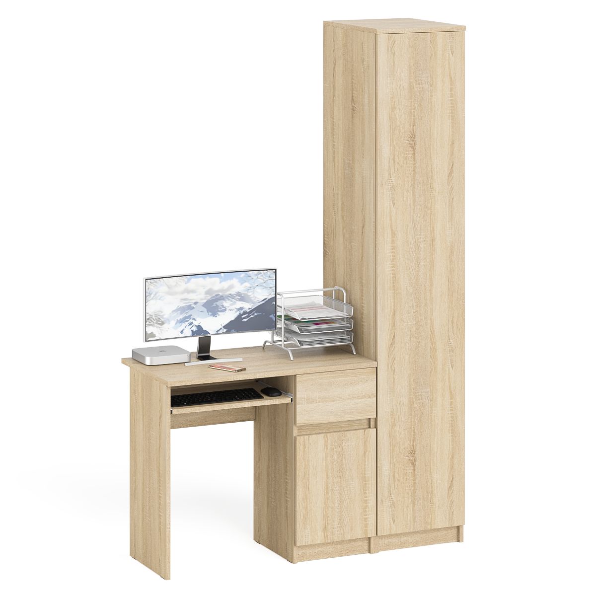 Комплектация включает стол компьютерный Мори МС-1 правый и пенал с дверкой Мори МШ400.1. Продуманная конструкция позволяет убрать лишние предметы, тем самым сохраняя единый стиль оформления помещения. Роль ручек выполняют сами фасады. Аккуратный стол Мори МС-1 правый компьютерный с тумбой и выдвижной панелью для клавиатуры. Тумба имеет нишу с полочкой за распашной дверкой и выдвижной ящик на роликовых направляющих. Стол компьютерный Мори МС-1 правый не имеет универсальной сборки - выдвижной ящик расположен справа. Узкий высокий пенал Мори МШ400.1 за распашной дверкой расположены пять полок. Универсальная сборка - сторону открывания двери Вы определяете при сборке.