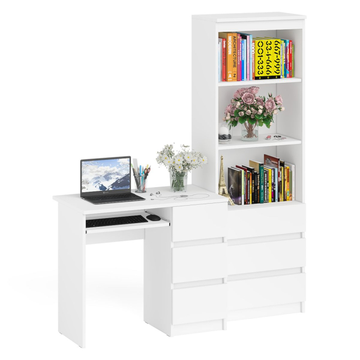 Стол компьютерный с тумбой справа и стеллаж с ящиками и нишами на 600 Мори - минималистичный дизайн и доступная цена позволяет наслаждаться качественной и современной мебелью без значительных финансовых затрат!