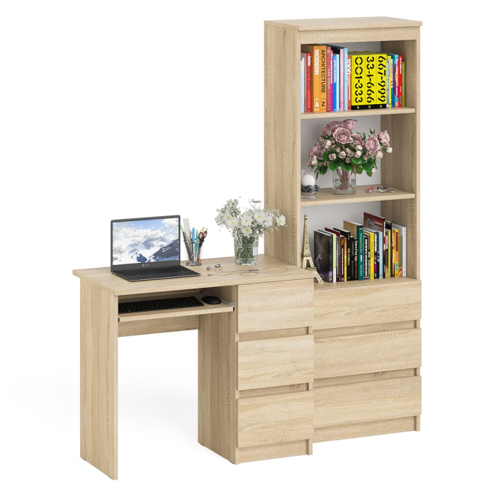 Стол компьютерный с тумбой справа и стеллаж с ящиками и нишами на 600 Мори - минималистичный дизайн и доступная цена позволяет наслаждаться качественной и современной мебелью без значительных финансовых затрат!