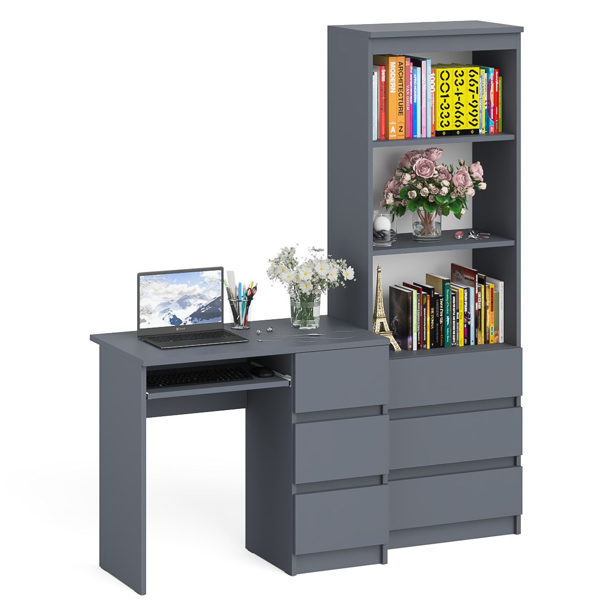Стол компьютерный с тумбой справа и стеллаж с ящиками и нишами на 600 Мори (Графит) Код I0000381528