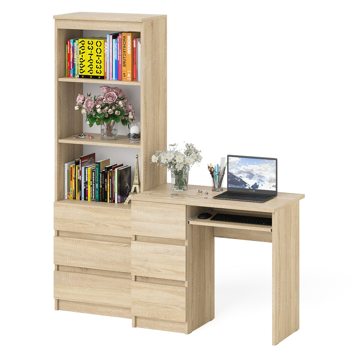Отзывы о Столплит Стол компьютерный с тумбой с ящиками слева и стеллаж-комод МСТ600.3 Мори Дуб Сонома