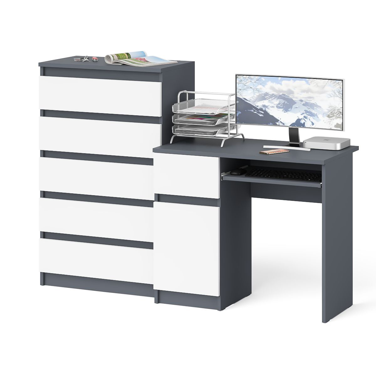 Стол компьютерный дверка и ящик слева МС-1 и высокий комод 5-ть ящиков Мори - минималистичный дизайн и доступная цена позволяет наслаждаться качественной и современной мебелью без значительных финансовых затрат!
