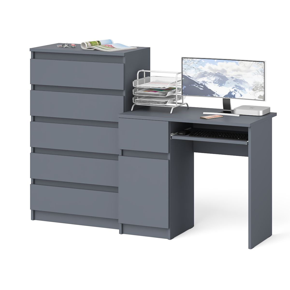 Стол компьютерный дверка и ящик слева МС-1 и высокий комод 5-ть ящиков Мори - минималистичный дизайн и доступная цена позволяет наслаждаться качественной и современной мебелью без значительных финансовых затрат!
