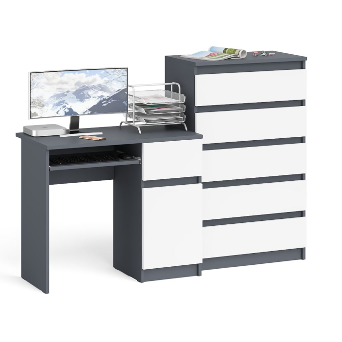 Компьютерный стол дверка и ящик справа МС-1 и комод высокий на 5-ть ящиков Мори (Графит/Белый) Код I0000381563