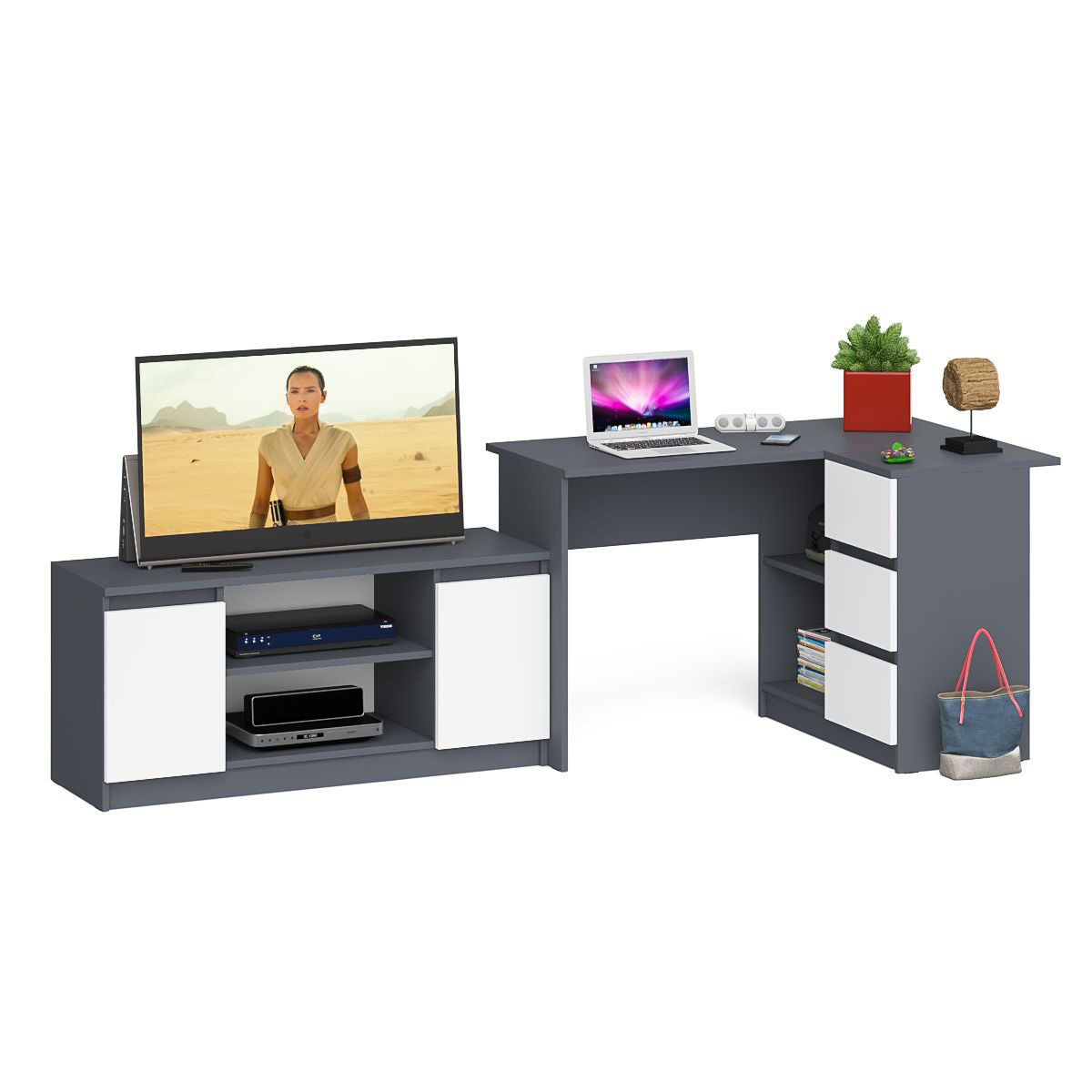 Отзывы о Столплит Компьютерный стол угловой МС-16 правый и тумба широкая 1200 Мори Графит/Белый